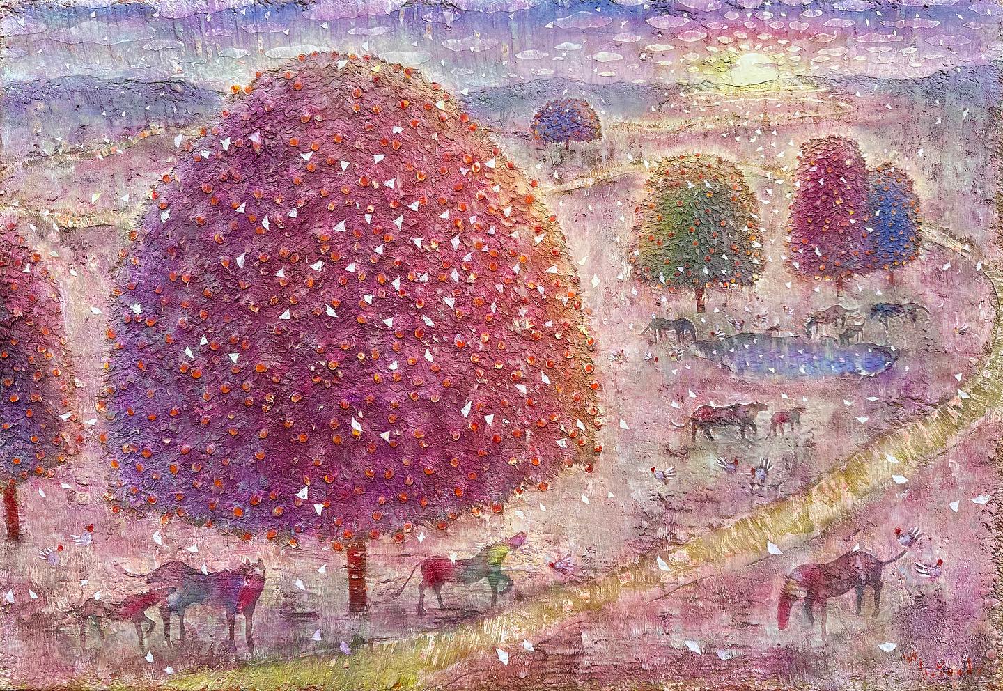 「すべての足元には土がある、だから私は土から描く」を基本コンセプトに制作し始める。「土」「水」「空気」が健康的に存在する空間を描くことにこだわり、ブータン王国で取材した道の景色を展開した作品「雨霞む道」(F150号、2013年)で、第75回記念一水会展文部科学大臣賞を受賞する。憲法シリーズに登場したモチーフから展開して作品は次第に多様化。